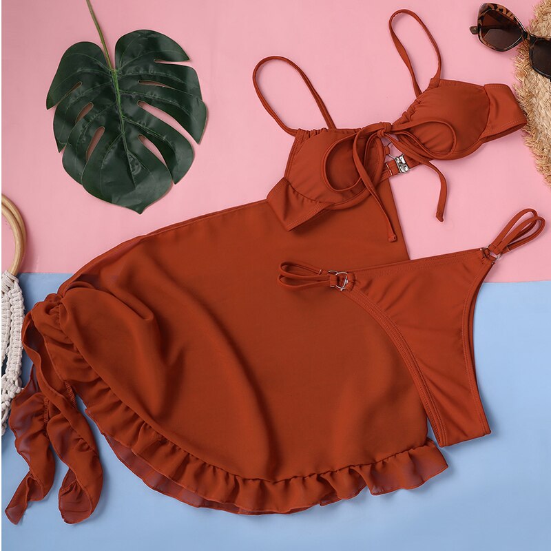 Peachtan String Bikini 2021 Skirt Swimsuit Women Push Up Swimwear Female Underwired 3 Pieces Set Sexy Bathing Suit Beach Wear