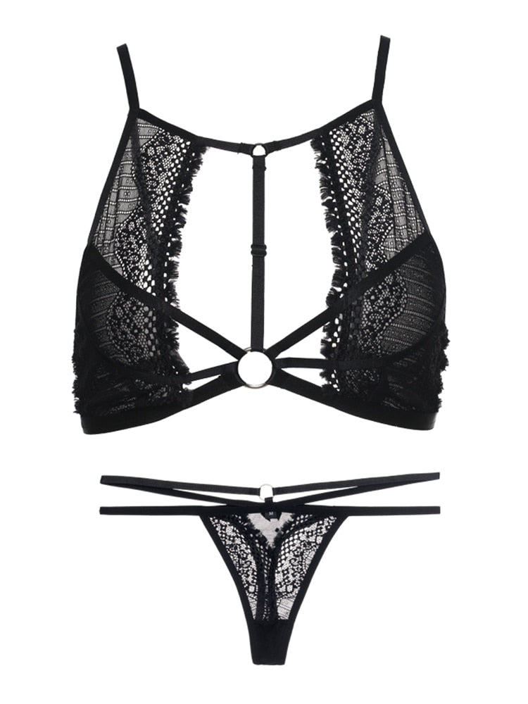 Perspective Bralette Sets Lenceria Intimates Sexy Lingerie Women's Ultra-thin Lace Temptation Underwire Bra Panty Set