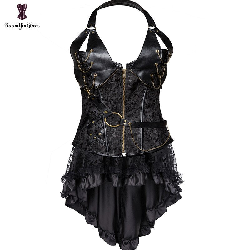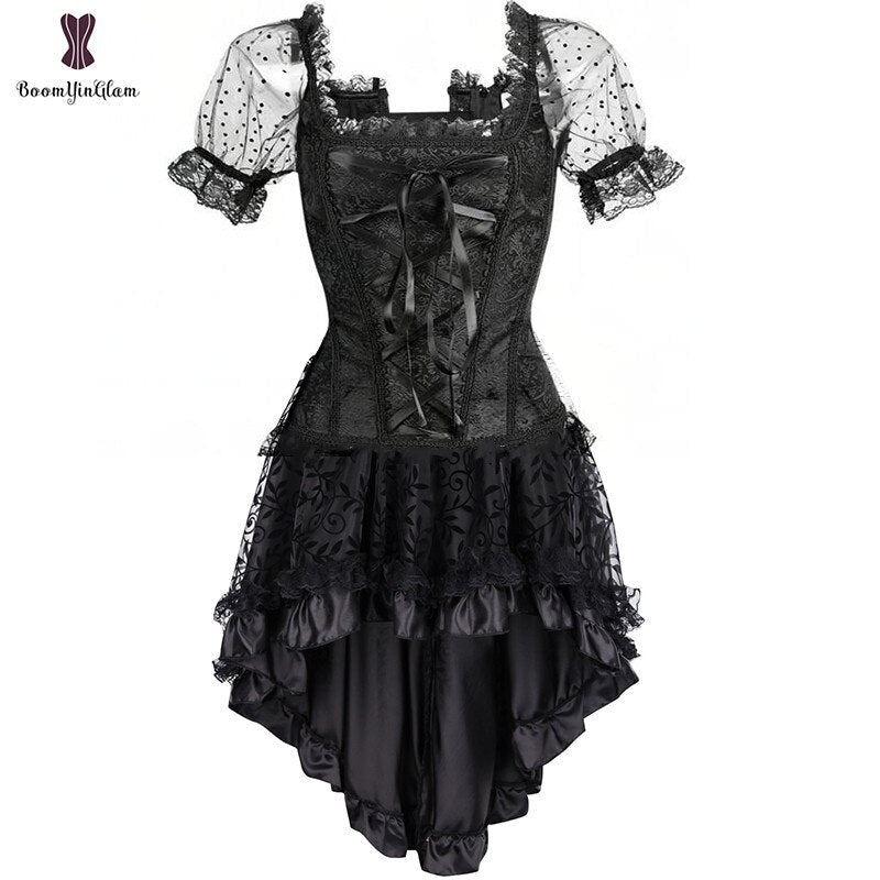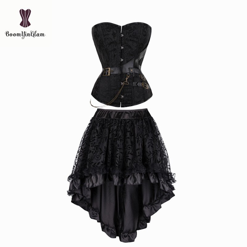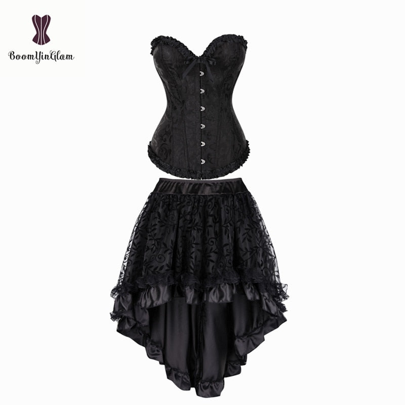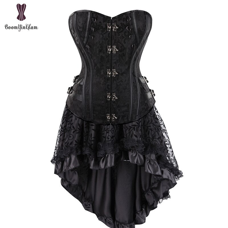 Plus Size Victorian Asymmetrical Ruffled Satin Lace Trim Gothic Skirts Women Corset Vintage Steampunk Skirt 937#