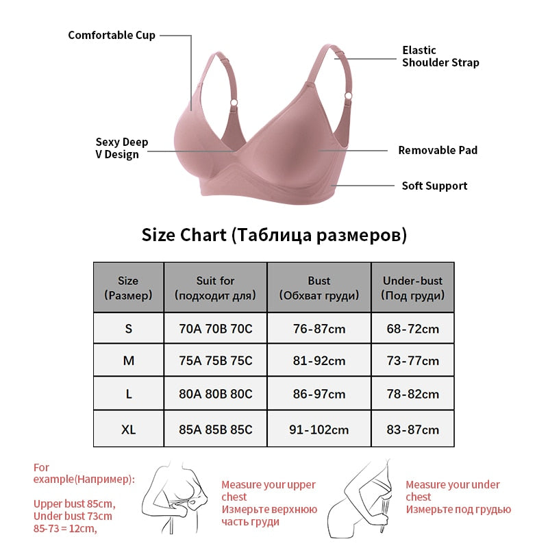Push Up Bra Seamless Underwear Women Top Sexy Bras without Frame Thin Unwired Bralette Brassiere Soft Comfort Lingerie Deep V