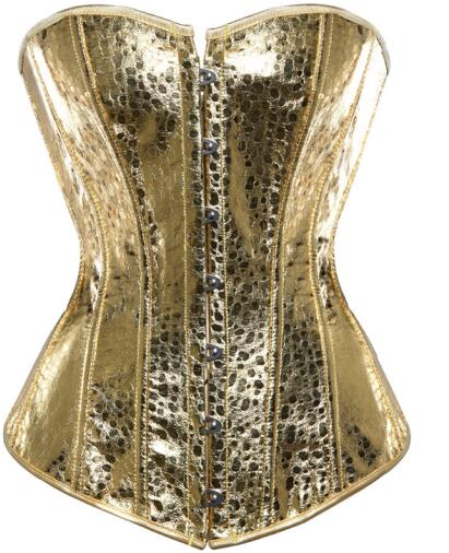Sapubonva corset bustier top women vintage style gold silver overbust corset leather nightclub sexy korsett lingerie strapless