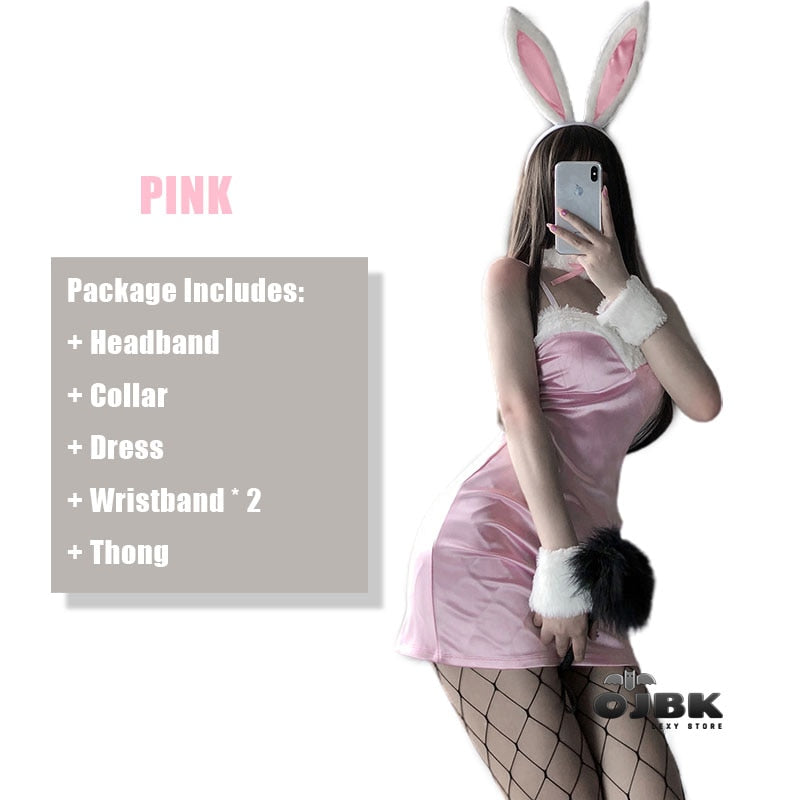 Sexy Classic Bunny Girl Cosplay Outfit Black Pink Japanese Anime Rabbit Uniform Porno Party  For Women Sex Lingerie AV Sets 0721
