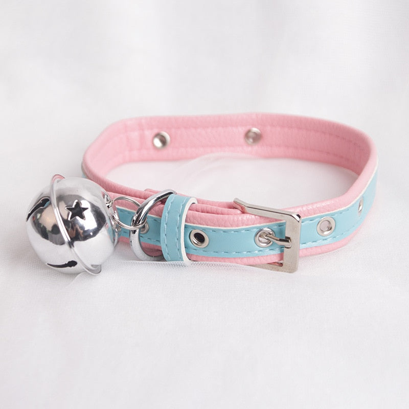 Sexy Cute Choker Leash Chain Pink Blue Harajuku Handmade Gothic Punk Leather Necklace with Bells Sex Toys for Couple Collar