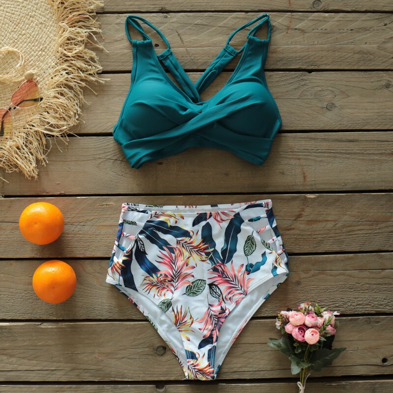 Sexy High Waist Bikini Set 2021 New Push Up Bandage Swimwear Women Print Floral Two Pieces Swimsuit Beach Wear Strappy biquini