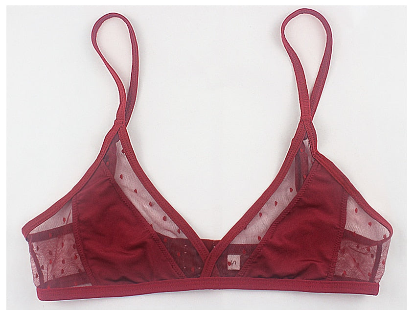 Sexy Lace Bralette Women Mesh Dot Bra Translucent Thin Bralet Triangle Cup Black Brassiere Lingerie Unlined Underwear Bras Top