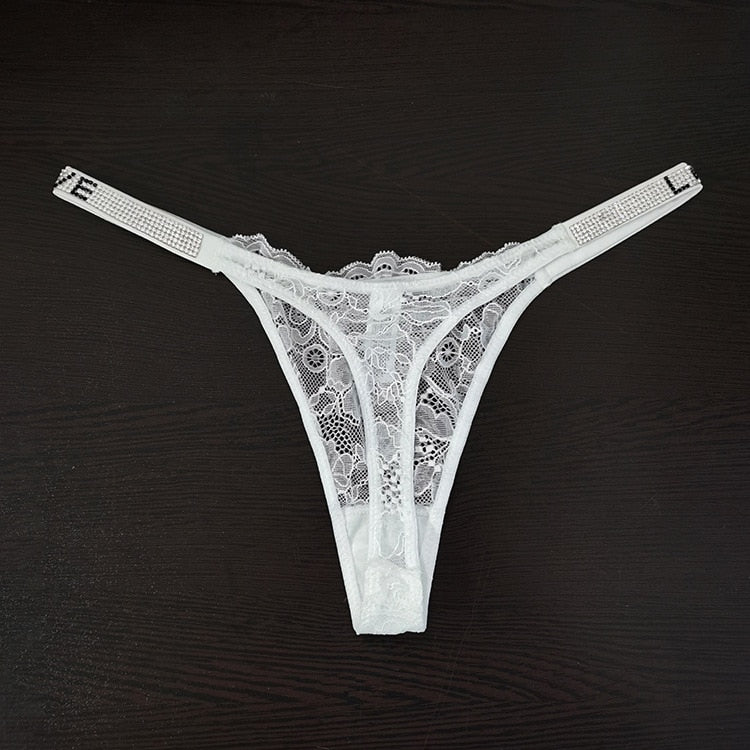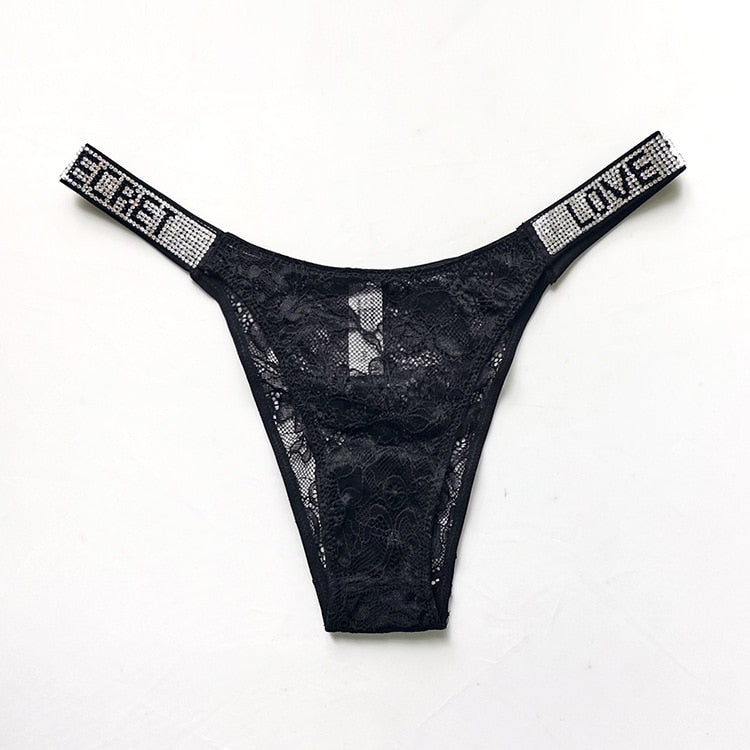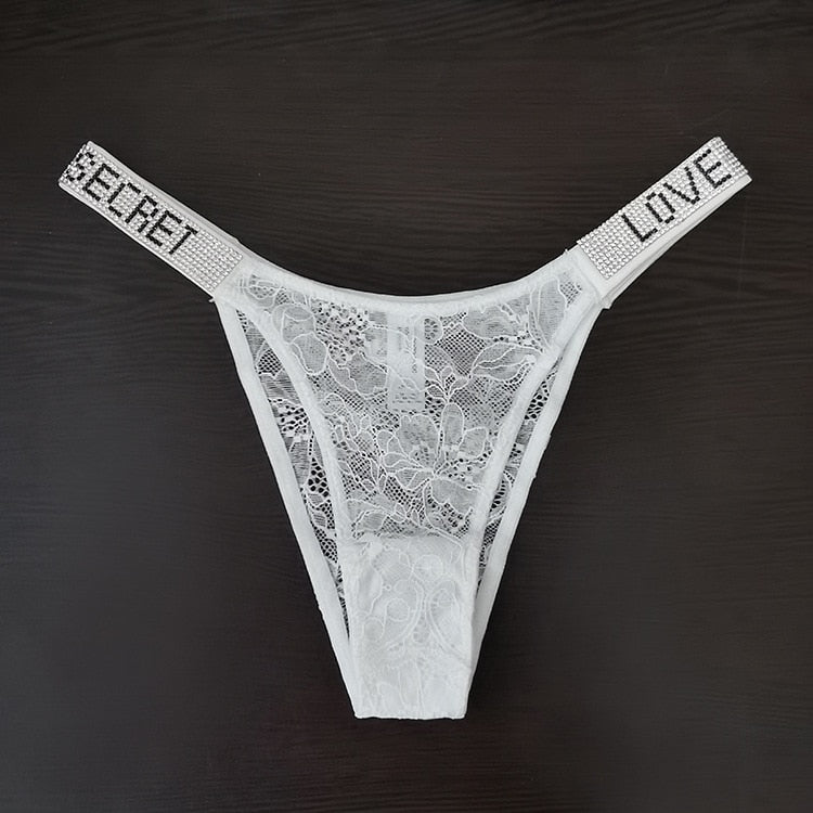 Sexy Lace Transparent Panties Women G String Love Secret Rhinestone Thong Lingerie Seamless Low Rise Intimates Underwear lenceri
