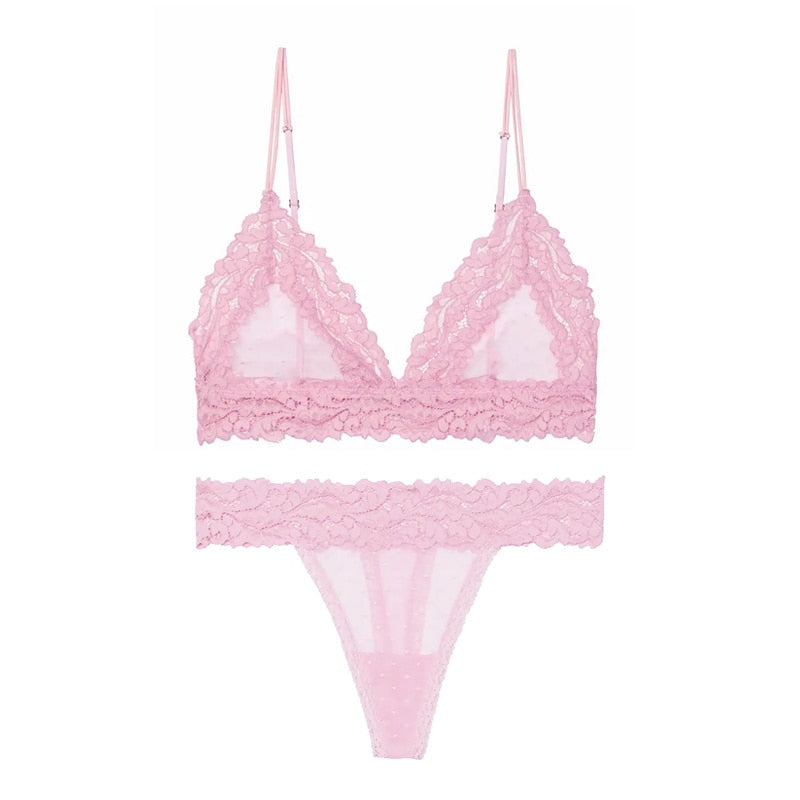 Sexy Lingerie Set Women Lace Bralette Underwear Transparent Mesh Dot Bra See Through Lingerie Black Brassiere Female Thong Sets