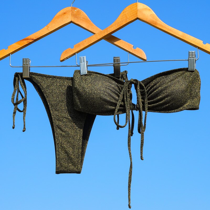 Shiny Bikinis Swimwear Women 2022 Summer Bikini Set String Swimsuit Micro Thong Two Piece Suits Halter Beachwear Sexy Bath Suits