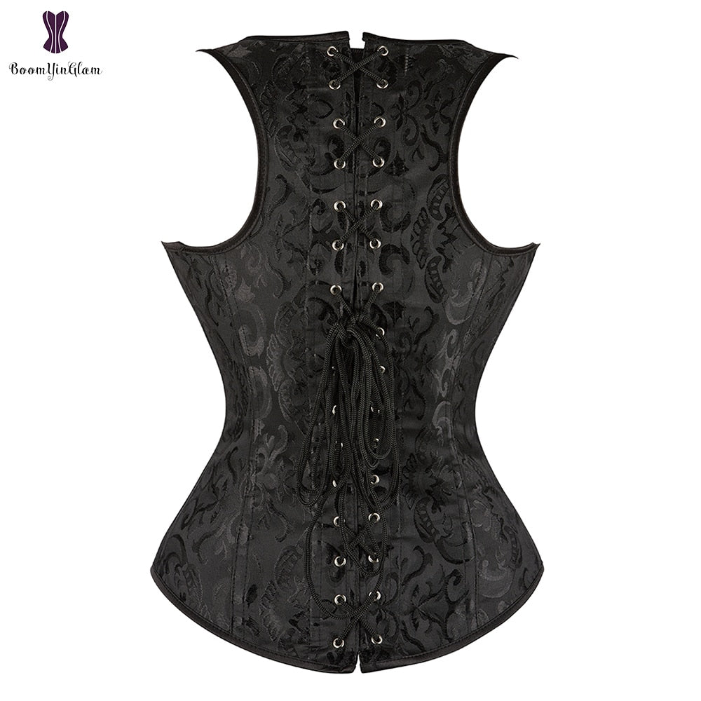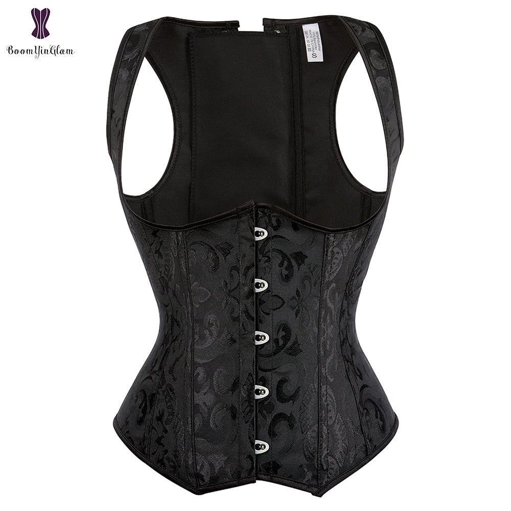 Steampunk Underbust Corset Vest Jacquard Floral Waist Cincher Shaper Shapewear With G String