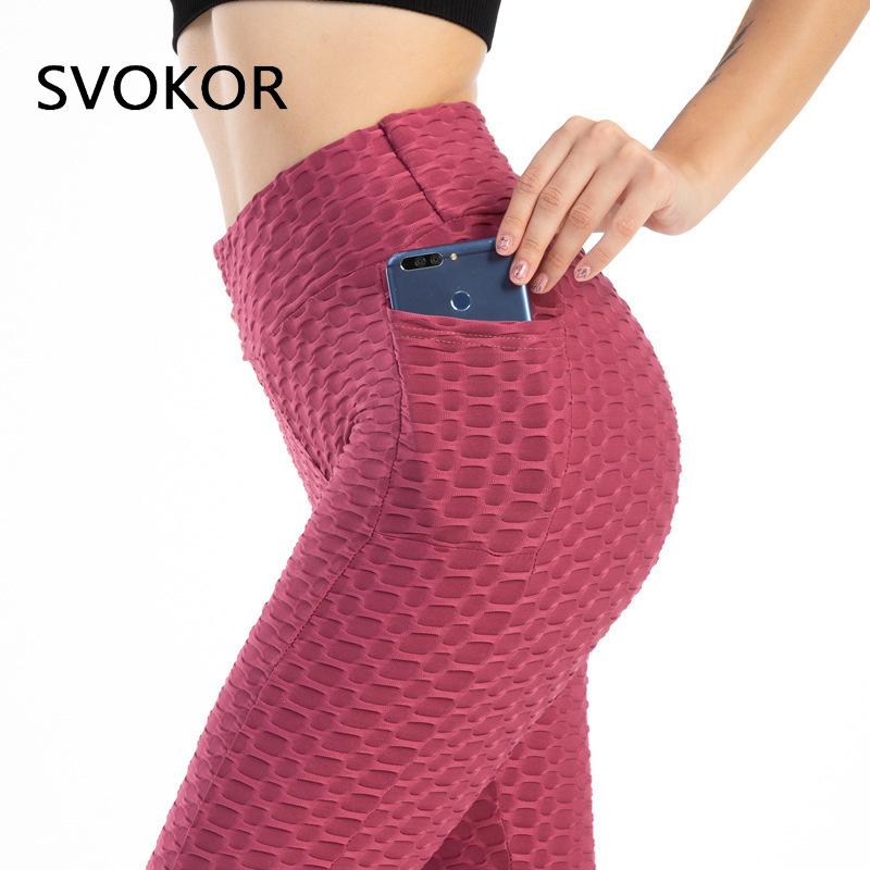 SVOKOR Anti Cellulite Women Leggings with Pockets High Waist Push Up Legging Fitness Gym Pants Spandex Polyester Active Wear