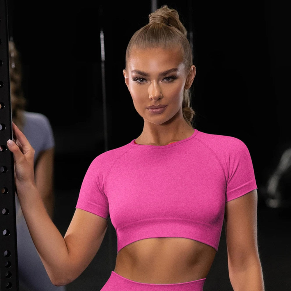 SVOKOR Fitness Women Shirts Seamless Crop Tops Sport Gym Womens Workout Clothes Short Sleeve Athletic Wear Solid T-Shirts