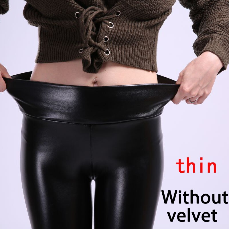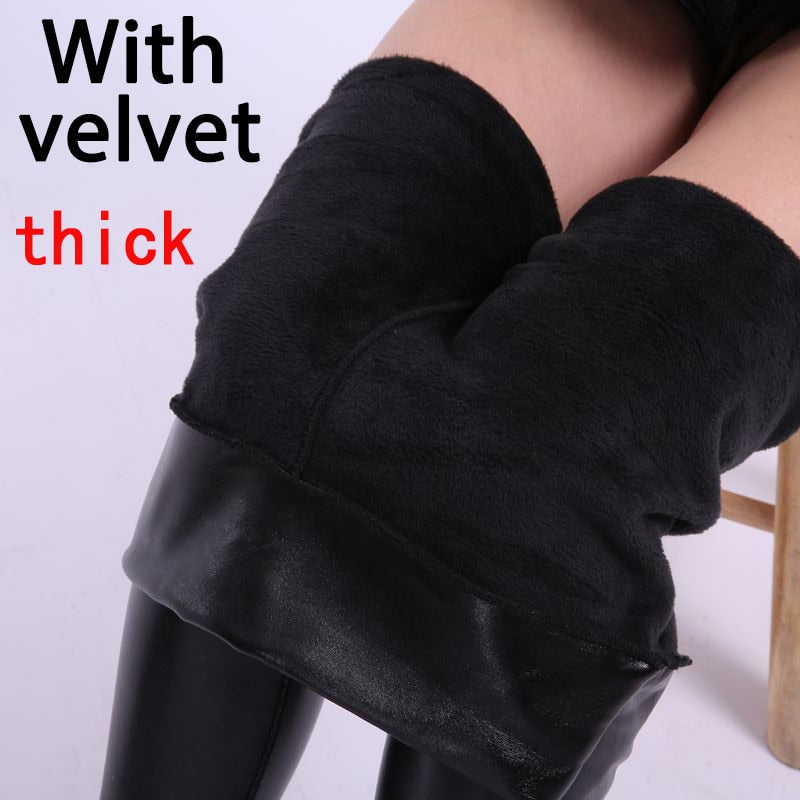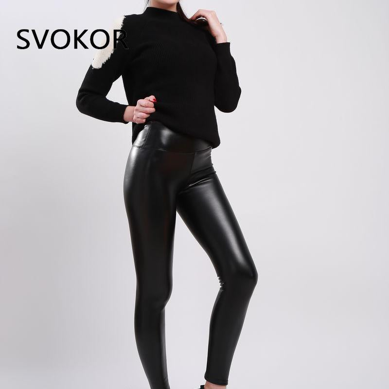 SVOKOR Women Winter Leather Pants High Waist Warm Velvet Pants Slimming Trousers Women Thick Stretch Pantalon Femme S-2XL