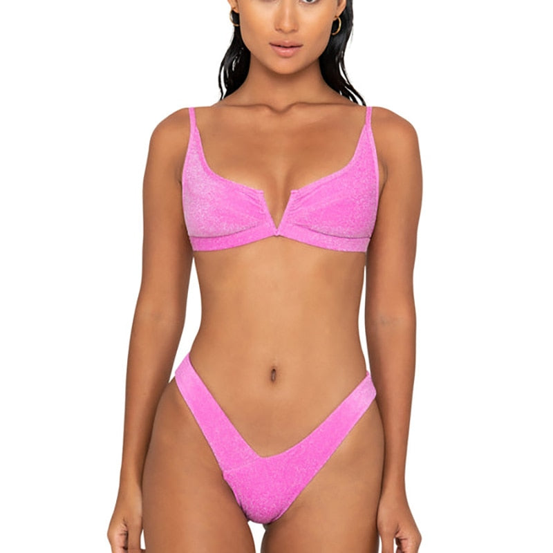 Swimwear Women Sexy Bandeau Swimsuit Separate Bikini Set 2021 Shiny Beachwear Green Color  Micro Thong Bikinis Brazilian Biquini