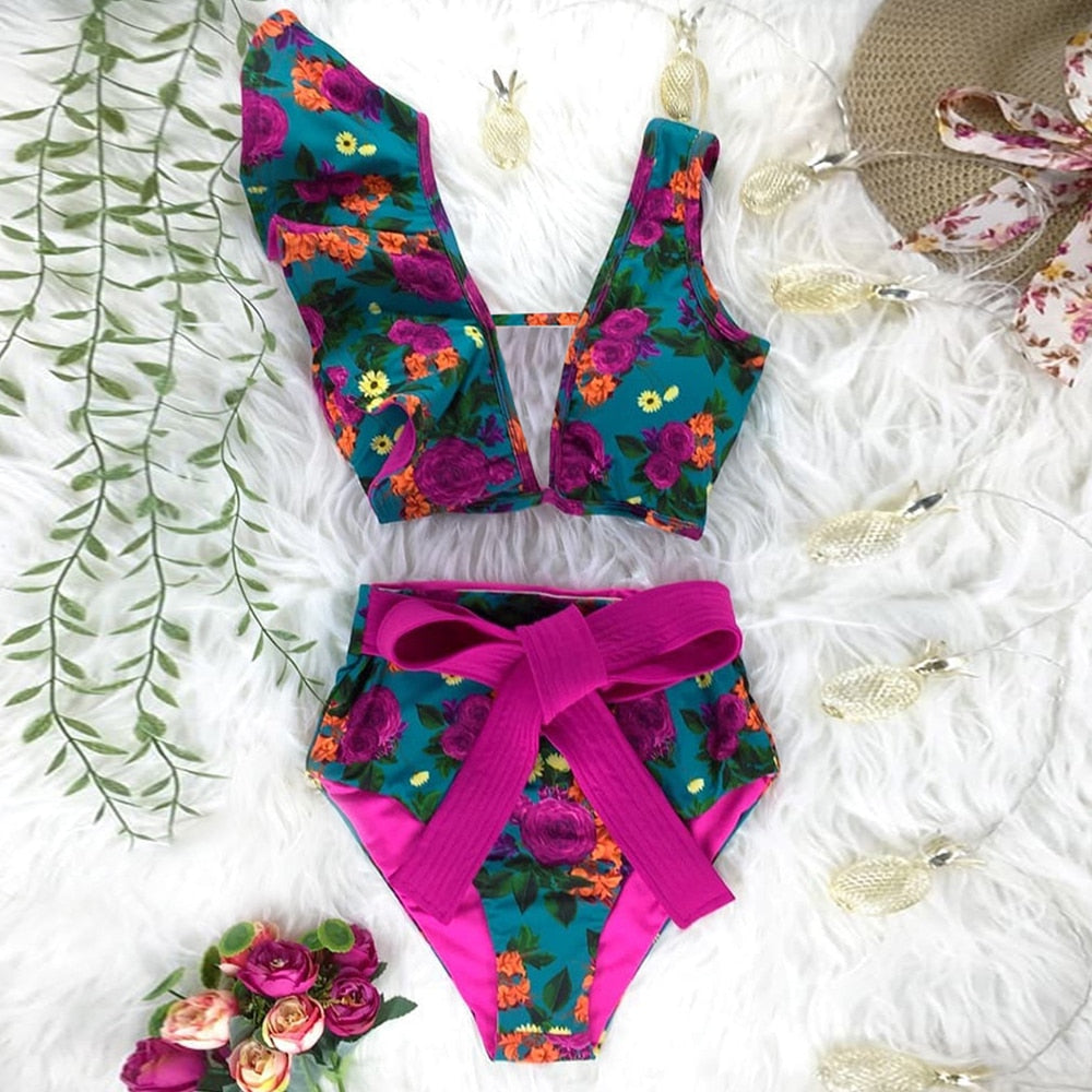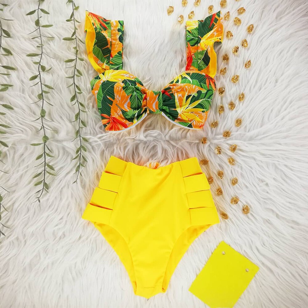 Two-Pieces Women Floral 2022 Push-Up Padded Bra Ruffles Bandage Bikini Set Swimsuit Swimwear Bathing Suit Beachwear Biquini