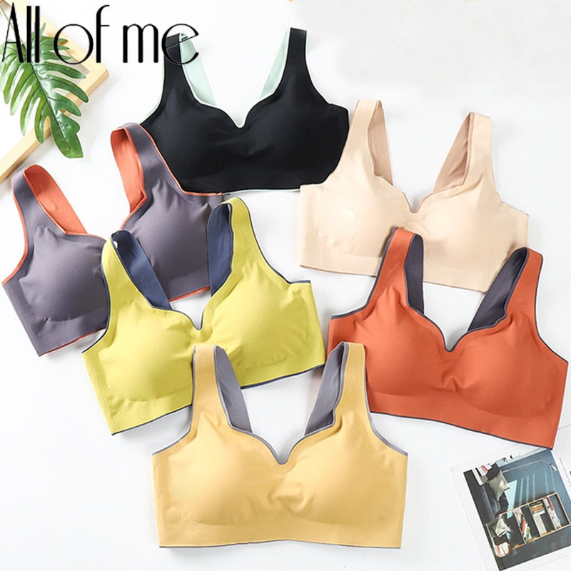 Women Bra Latex Push Up Bras Seamless Bralette Female M-XXL Plus Size Bra Tank Tops Gathers Shockproof Pad Brassiere Underwear