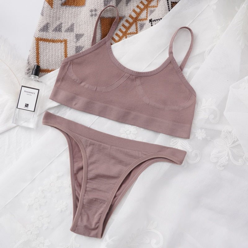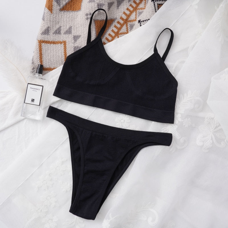 Women Bra Set Panties Sexy Push Up Bralette Female Seamless Underwear Tank Crop Tops Sports Lingerie Brassiere Set