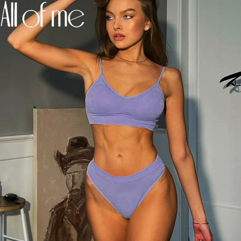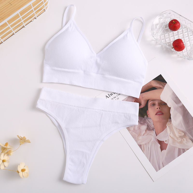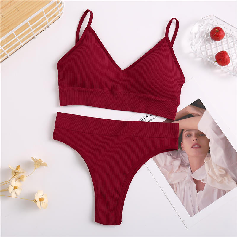 Women Bra Set Sexy Lingerie Suit Underwear Brassiere + Thong Panties Female Tank Crop Tops Set Bralette Black Blue Solid Color