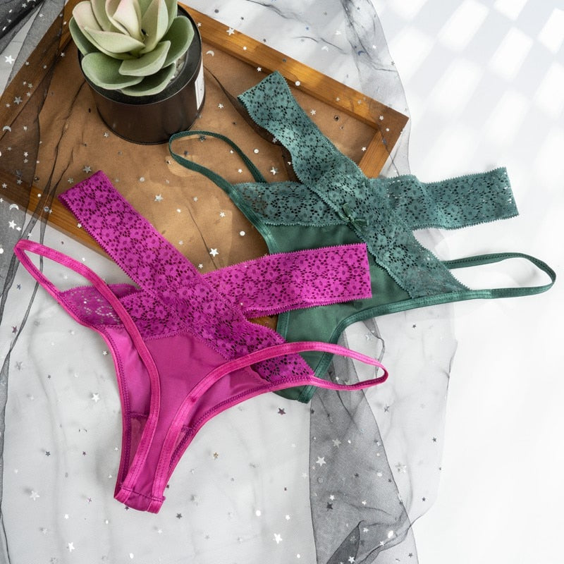 Women Sexy Lace Panties Transparent Low-waist Thong Intimate Lingerie Female Hollow Out Fashion Solid Color G String Underwear