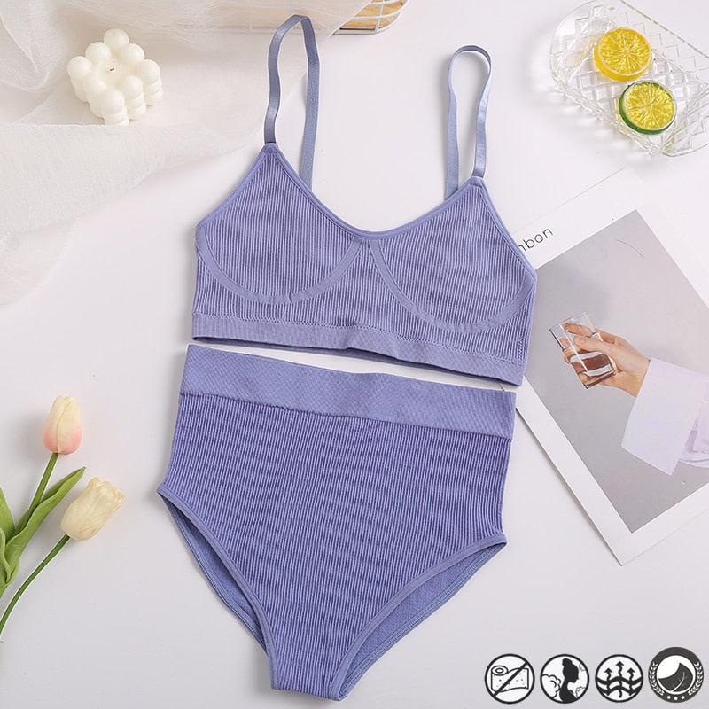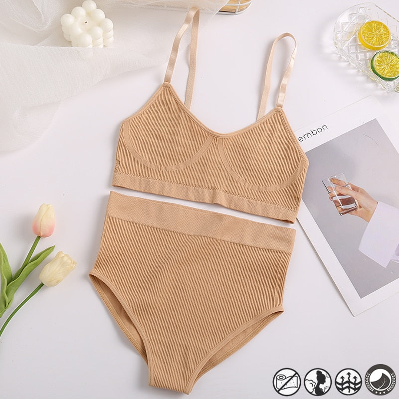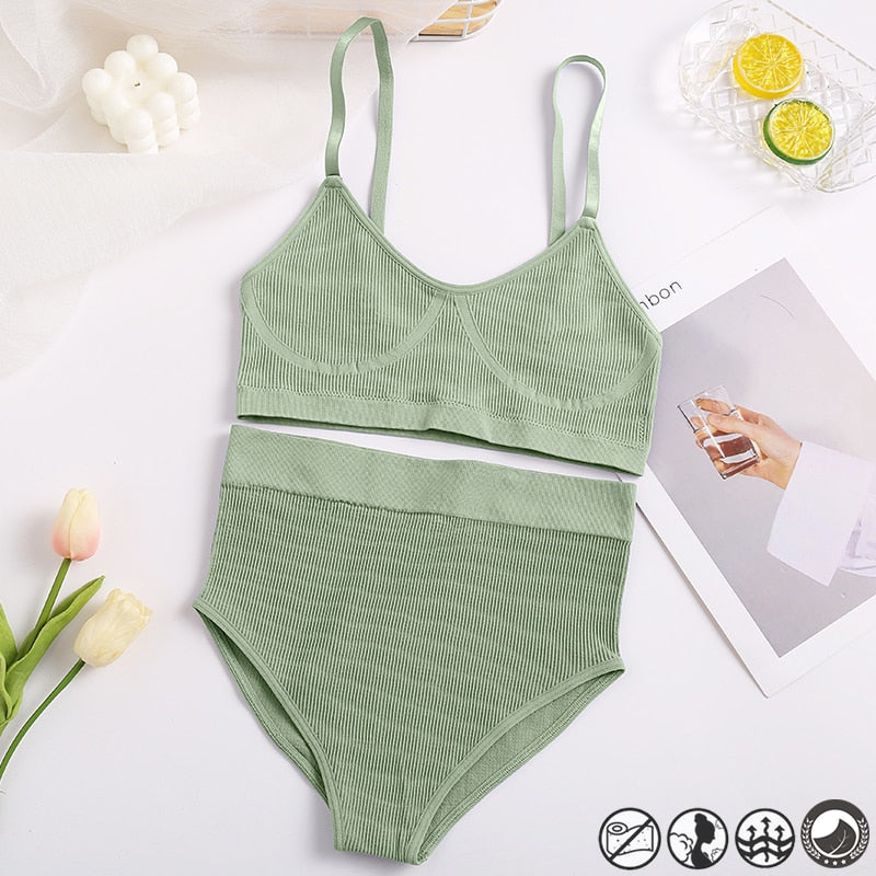 Women Sexy Underwear Seamless Bra Set High Waist Panties Female Bralette Lingerie Fitness Crop Top Simple Active Girls Sport Bra