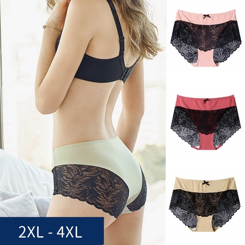 Women Underwear Sexy Lace Panties Plus Size Mid Waist Briefs Thin Comfortable Soft Large Size Modal Underpanties
