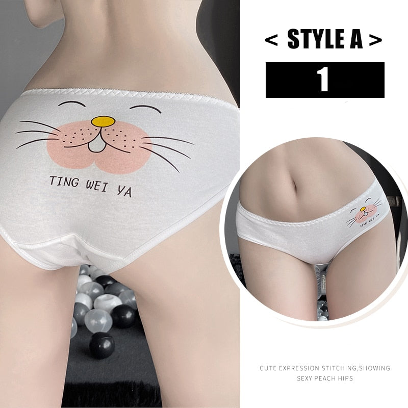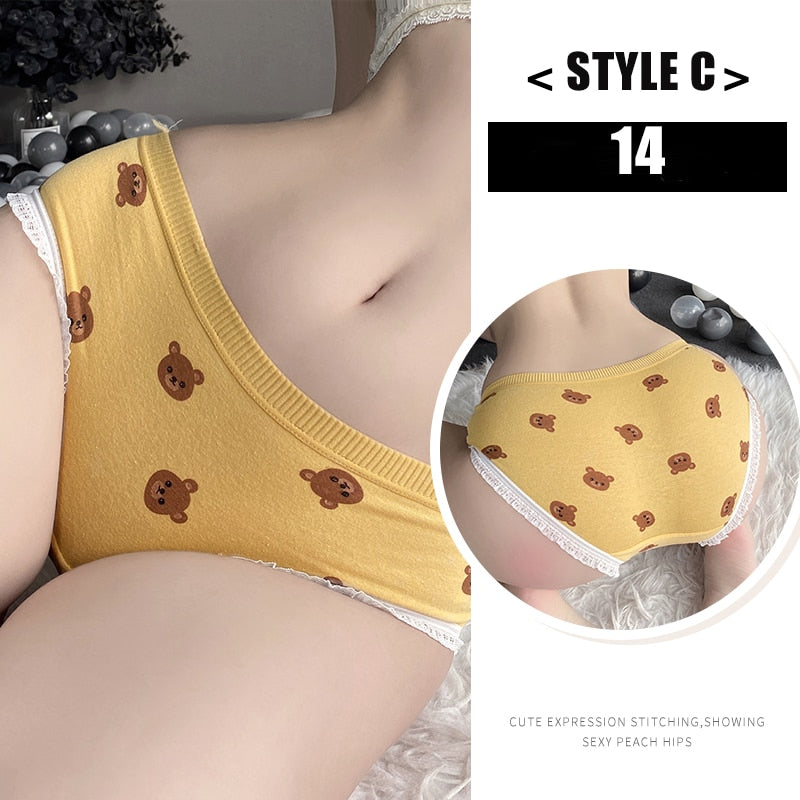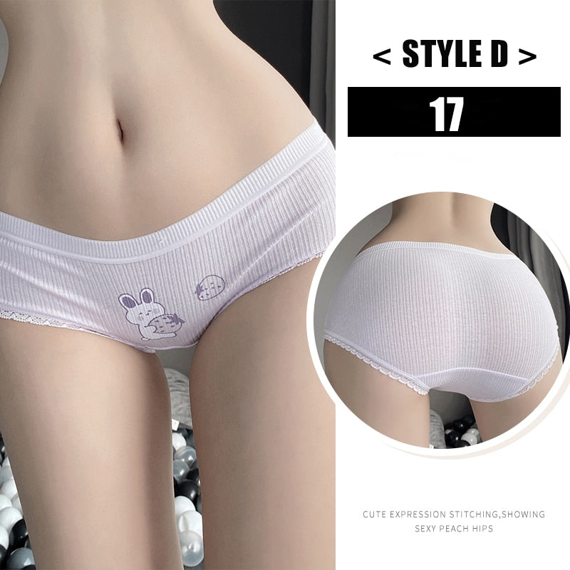Women's Cotton Underwear Kawaii  Anime Coverage Panties Sexy Lace Breathable Soft Lingerie Lovely Cute Seamless Stretch Briefs