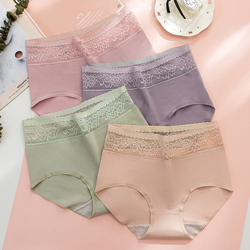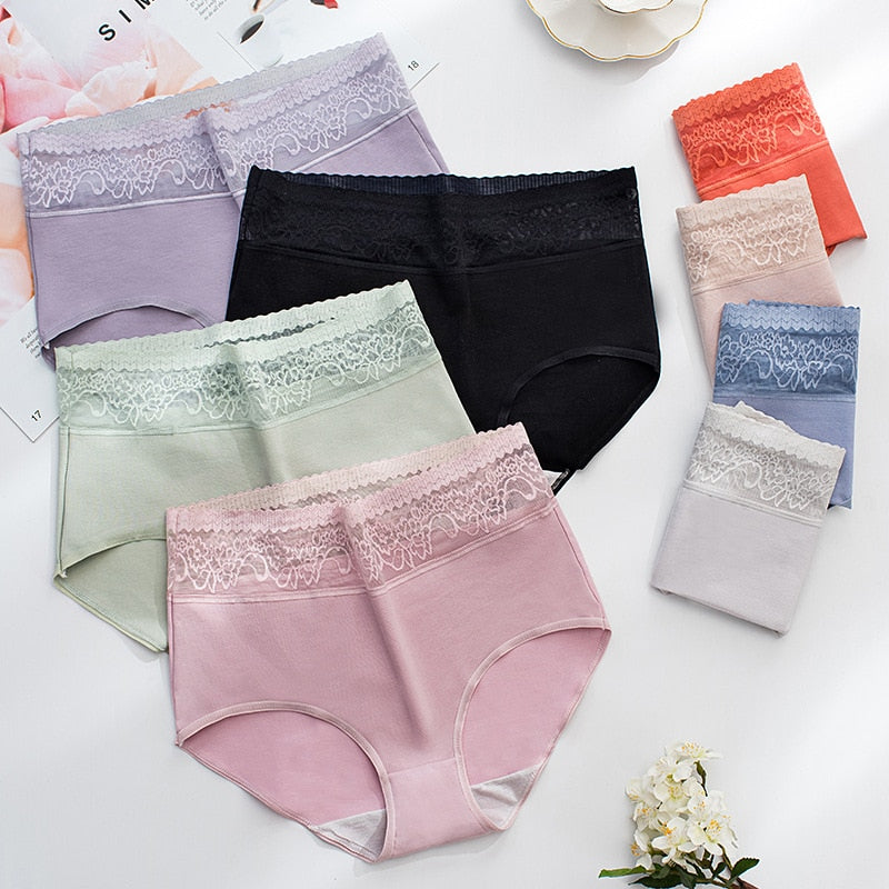Women's Cotton Underwear Sexy Lace Panties High Waist Solid Color Underpants Seamless Women's Briefs Plus Size Female Lingerie