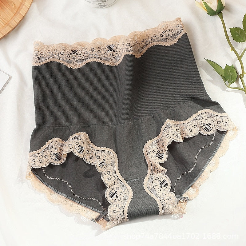 Women's Cotton Underwear Sexy Lace Panties High Waist Warm Palace Underpants Women's Comfort Boxer Pants Seamless Fashion Briefs