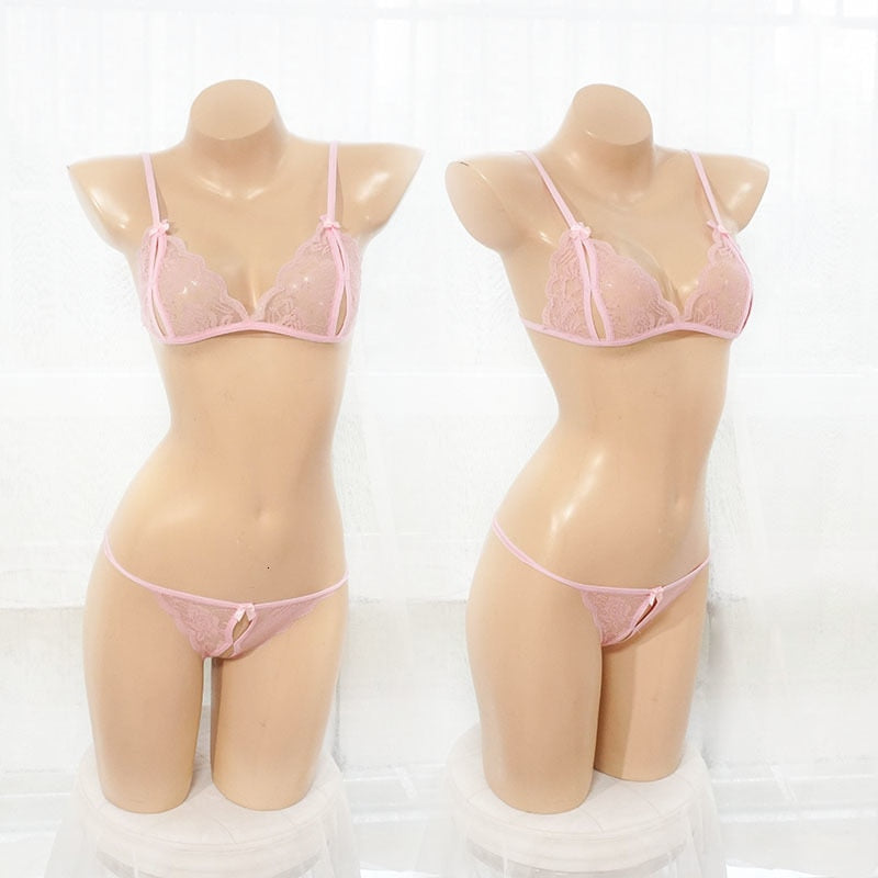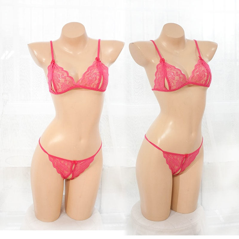 Women's Erotic Lingerie Transparent Crotchless Lace Sexy Underwear Bra Pants Exotic Apparel Pajamas Hot 8 Colors 2pcs Set