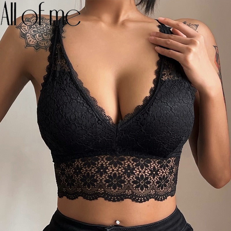 Women's Top Sexy Crop Top Female Lace Underwear Tank Top Girls Cami T-shirt Sexy Deep V Design Lingerie Floral Backless Camisole
