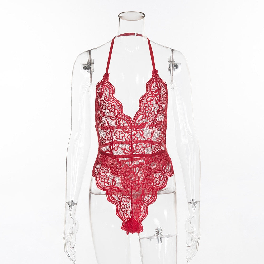 Yimunancy Floral Lace Bodysuit Women 9 Colors Halter Backless Bodysuit Ladies Sexy Teddies Bodysuit Body Femme